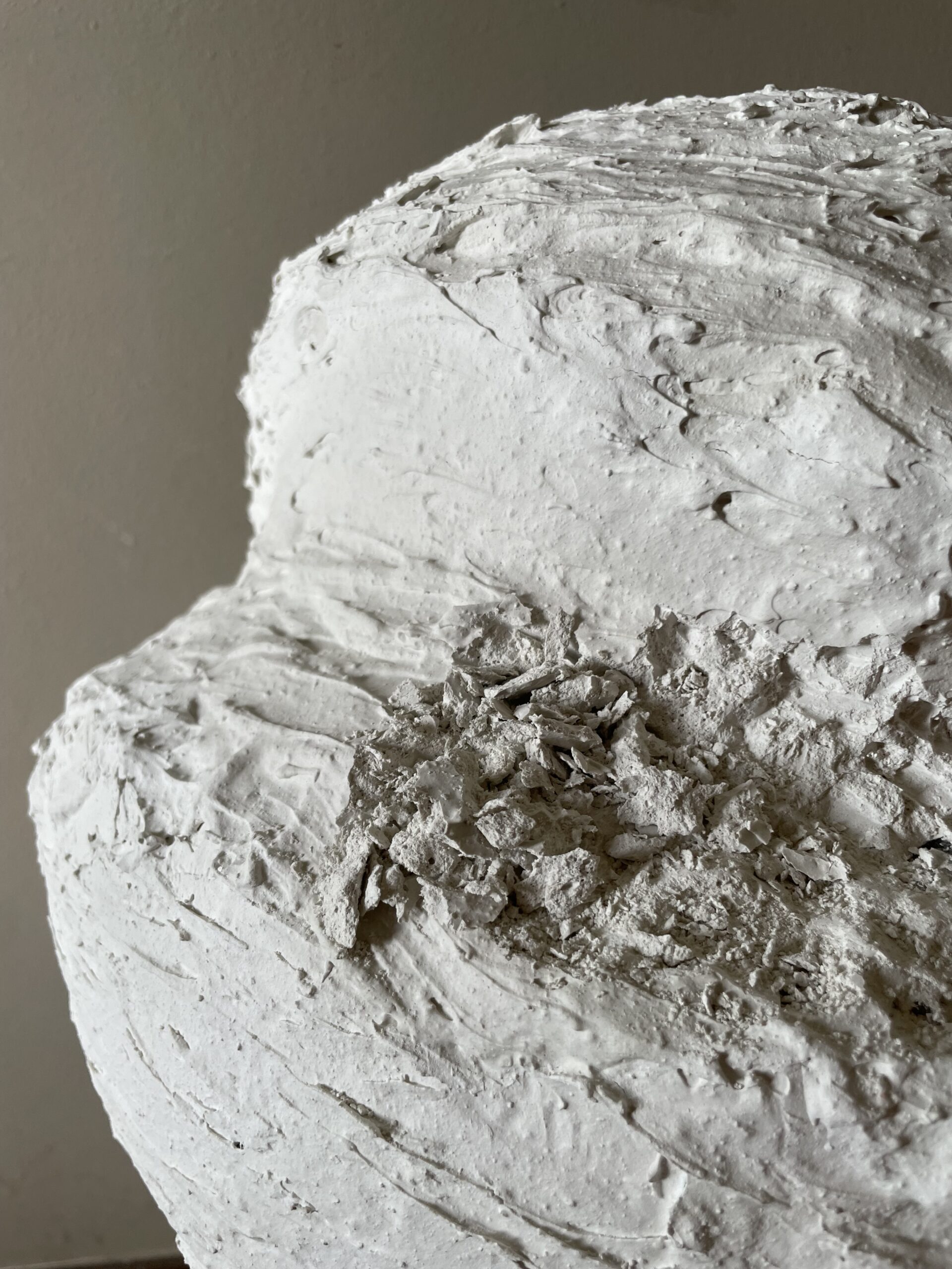 Le sue opere nascono da una lavorazione manuale attenta al gesto e al tempo, traducendo emozioni in superfici tattili e volumi risonanti.